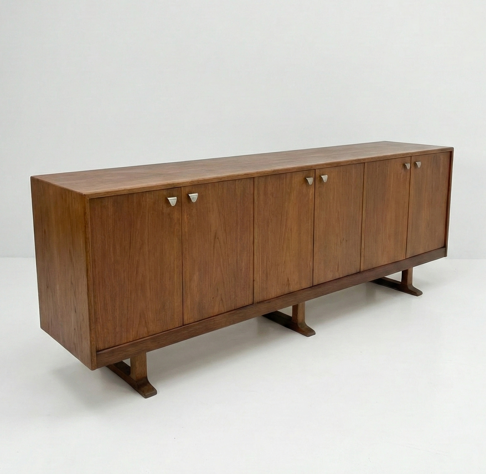 The sideboard in teak, designed by Kurt Østervig in 1961 and manufactured by K.P. Furniture during the 1960s represents a perfect fusion of functionality and aesthetics within Danish furniture design.