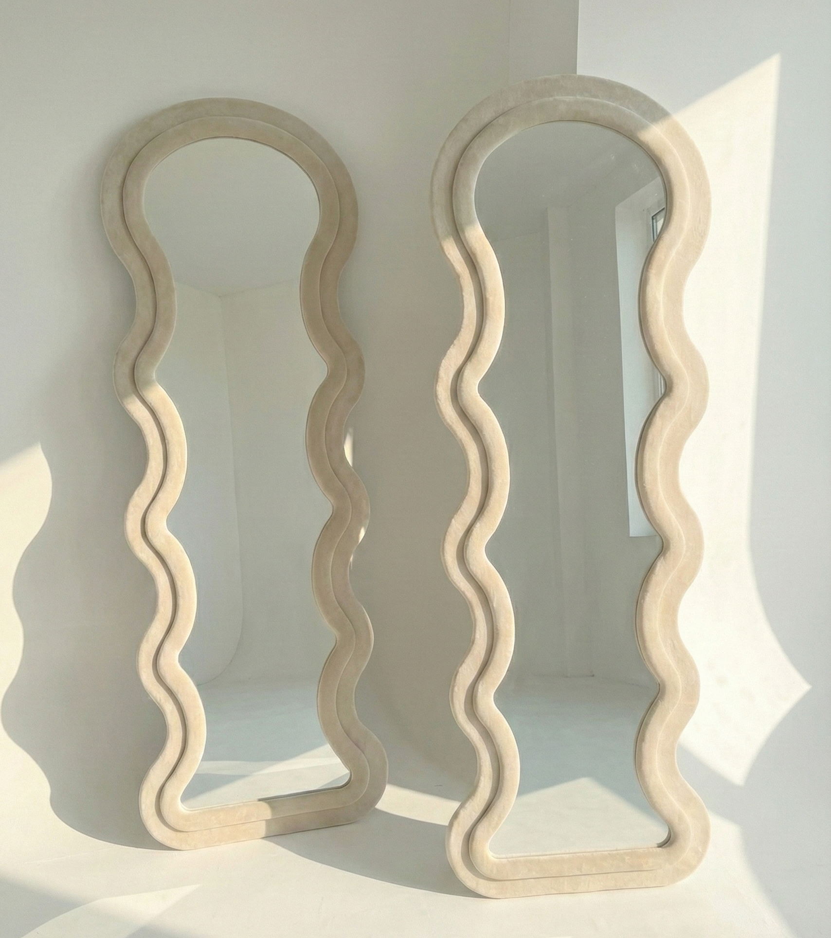 Mid Century Modern wavy floor mirror velvet frame retro