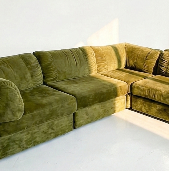 Mid Century Parker crushed velvet olive green lounge seat chair modular sofa playpen five piece style 70s era